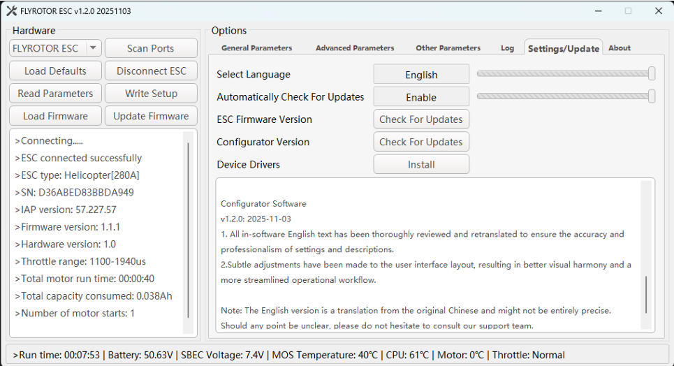 FlyRotor ESC Configurator – Other