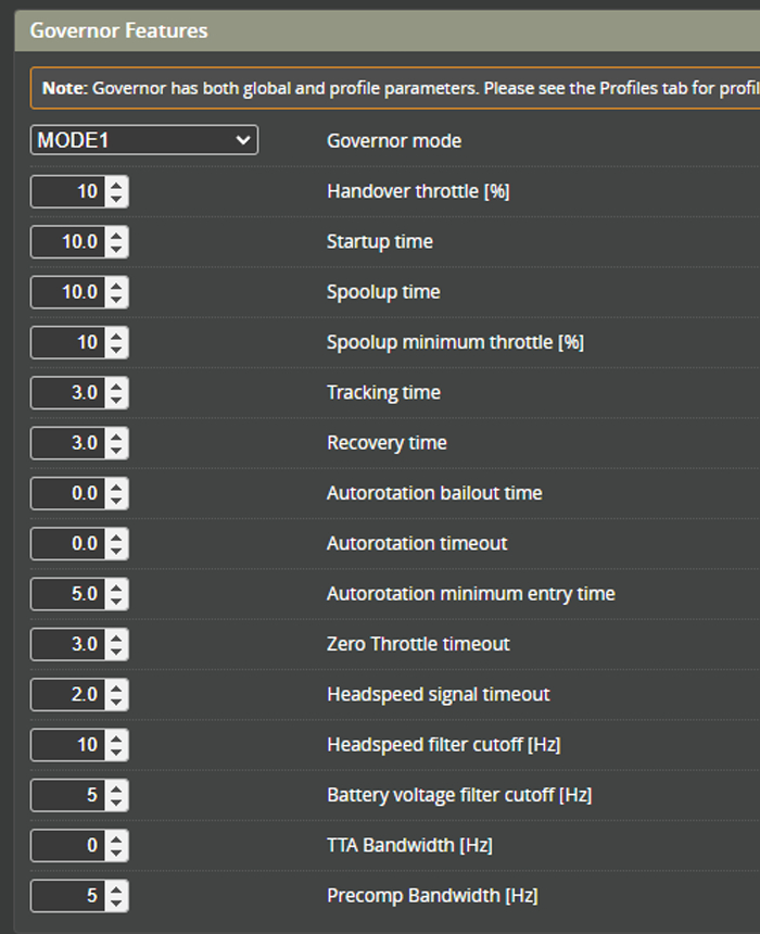 Rotorflight Profile – Governor settings