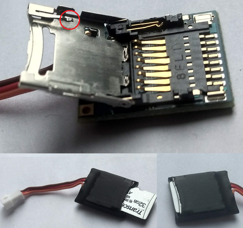 Some versions use an open/lock hinge mechanism instead of a 'push to eject' SD card socket, so you can't wrap it in heat shrink tube. You can fix that by carefully flattening the SD card retainer pin a little bit.