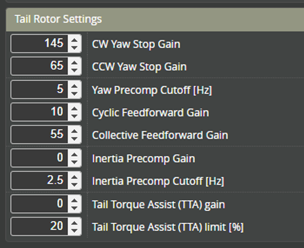 Rotorflight Profile – Tail rotor settings