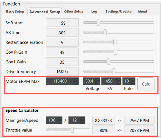 - You must use the Speed Calculator to determine if your target RPM is feasible and/or throttle value % is sufficient for governor functions.